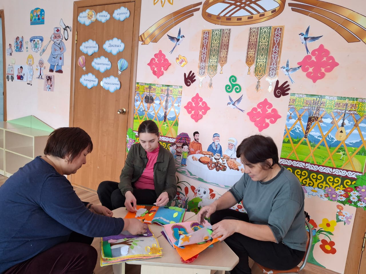 Маусым айында бөбекжай ӘдіскерАйтпаева Ж.К. балабақшаға келмейтін ата - аналармымен кездесіп «Мектепке дейінгі балалардың жаңа форматтағы жұмыс түрі» тақырыбына кеңесін берді. Балабақшада жана формат түрін ата - аналарға түсіндіріп берді.
